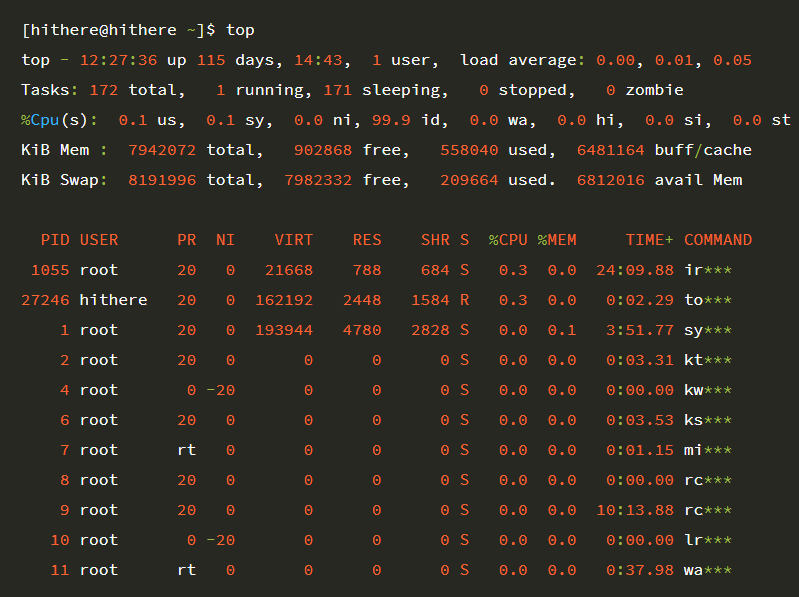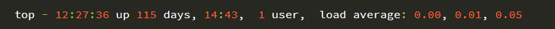 첫 번째 줄 내용부터 현재시간을 표시하고, 서버가 구동된지 115일이 된 것을 확인할 수 있다.