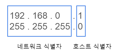 서브넷 마스크는 어디까지가 네트워크 식별자고, 어디까지가 호스트 식별자인지 알려준다. 즉, 255.255.255.0는 255로 이루어진 앞의 3칸은 네트워크 식별자이고, 0으로 이루어진 마지막 칸은 호스트 식별자로 쓰겠다는 뜻이다.