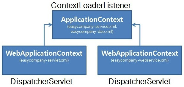 web.xml에는 ContextLoaderListener와 DispatcherServlet의 2가지 설정(기본적으로 xml)이 있다.