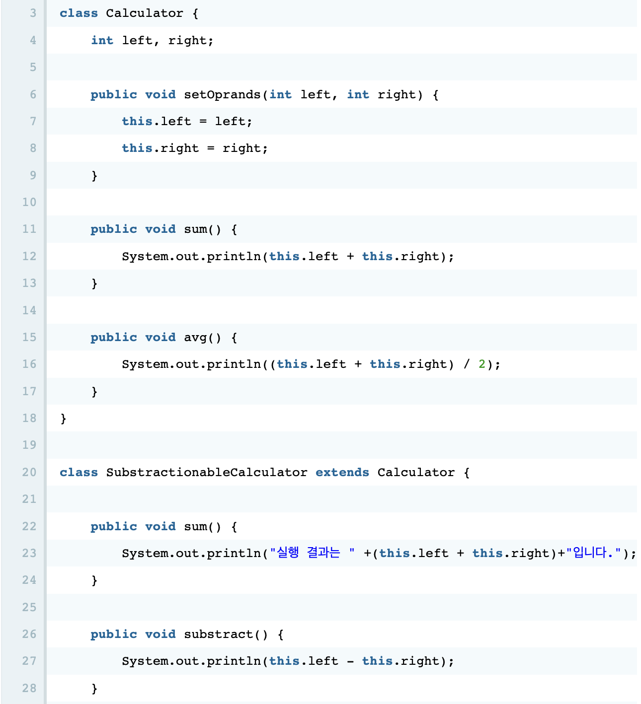 위의 예제로 sum 메소드만 확인하면 출력되는 값은 서브에 있는 sum 메소드가 출력된다.