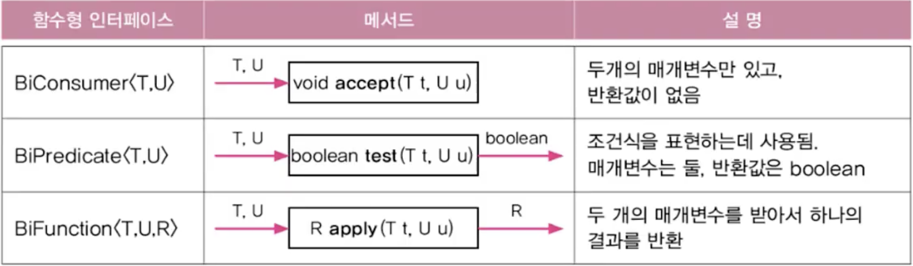 (단, 함수형 인터페이스의 메소드와 람다식의 매개변수 개수와 반환타입이 일치해야 함)