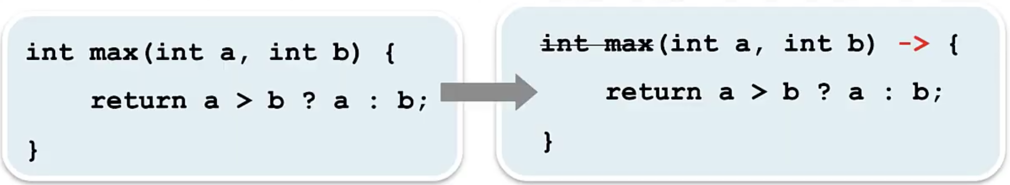 3. 매개변수의 타입이 추론 가능하면 생략가능 (위의경우 int, 대부분의 생략 가능)