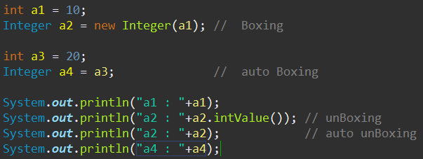 -> Wrapper 클래스(Boolean, Byte, Short, Integer, Long, Character, Float, Double)로 되어져 있는 객체를 기본자료형(boolean, byte, short, int, long, char, float, double)으로 만들어주는 것을 말한다.