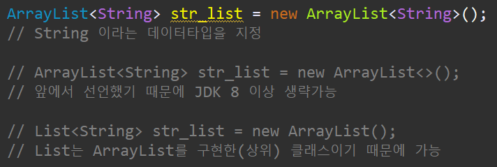 ※ Collection은 Object 이기만 하면 모두 입력이 가능하다. 하지만 사용할 때 특정한 데이터 타입만 꺼내오는 것은 번거롭다. 그래서 배열처럼 특정한 데이터만 입력하도록 만든것이 제네릭이다.