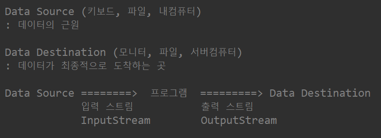 한 곳에서 다른 곳으로의 데이터 흐름을 Stream (스트림)이라고 한다.