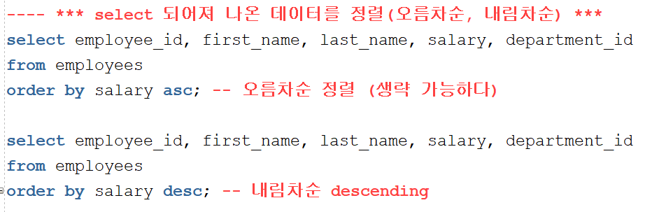 order by (alias명) asc; - 도 가능하다. alias 또는 해당 컬럼의 숫자를 사용해 대체 가능 (처리 순서에 유의)