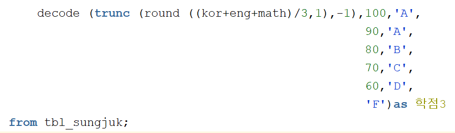 decode (조건문, 값, 실행문, else문) - case 문과 동일