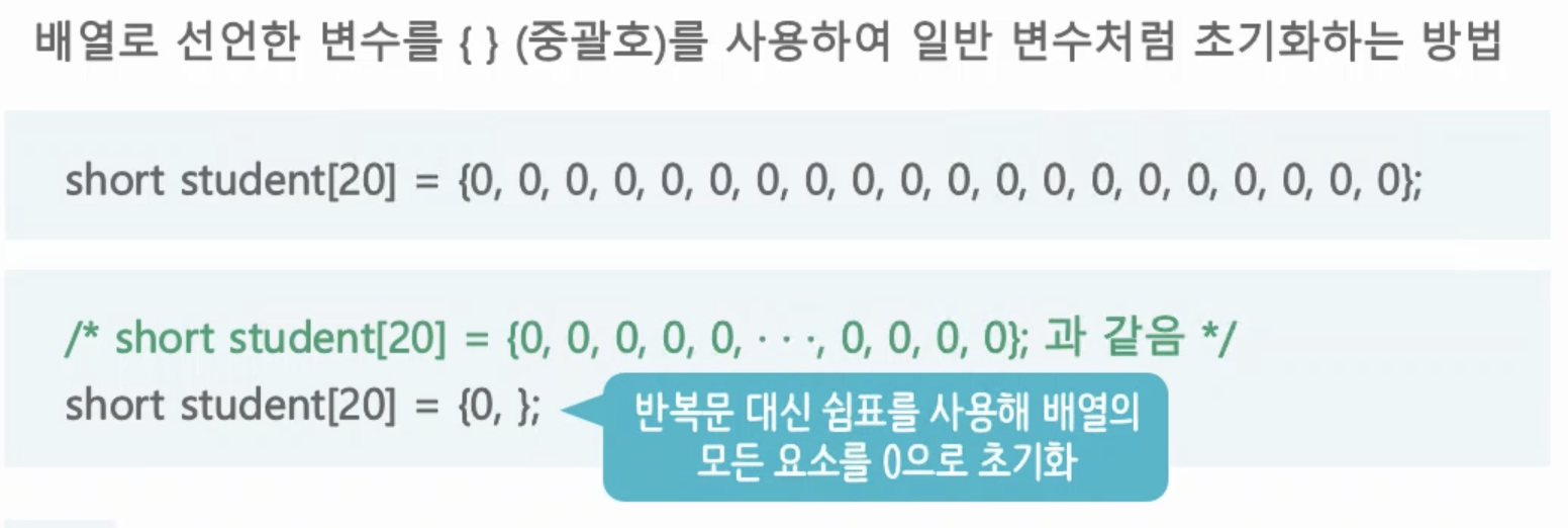 # 단, 초기화값이 0이 아닌 다른값으로 사용하고싶은 경우 반복문으로 사용해야함