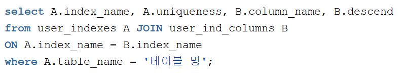 where name = ' 인덱스명 ' ;
