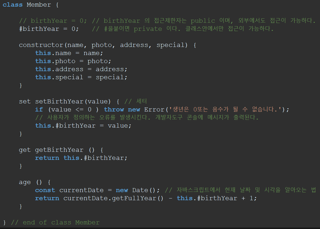 (변수명 앞에 #을 붙이면 private가 된다. 클래스 내부에서만 접근이 가능하다. default는 public)