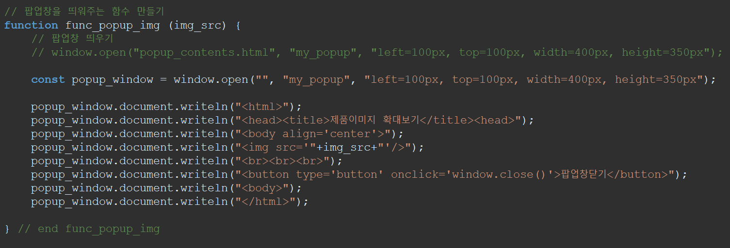 width = pixels - 팝업창의 너비를 지정한다.(width=500)