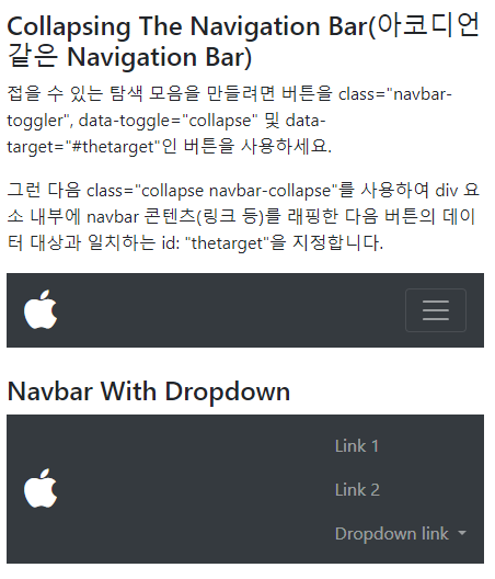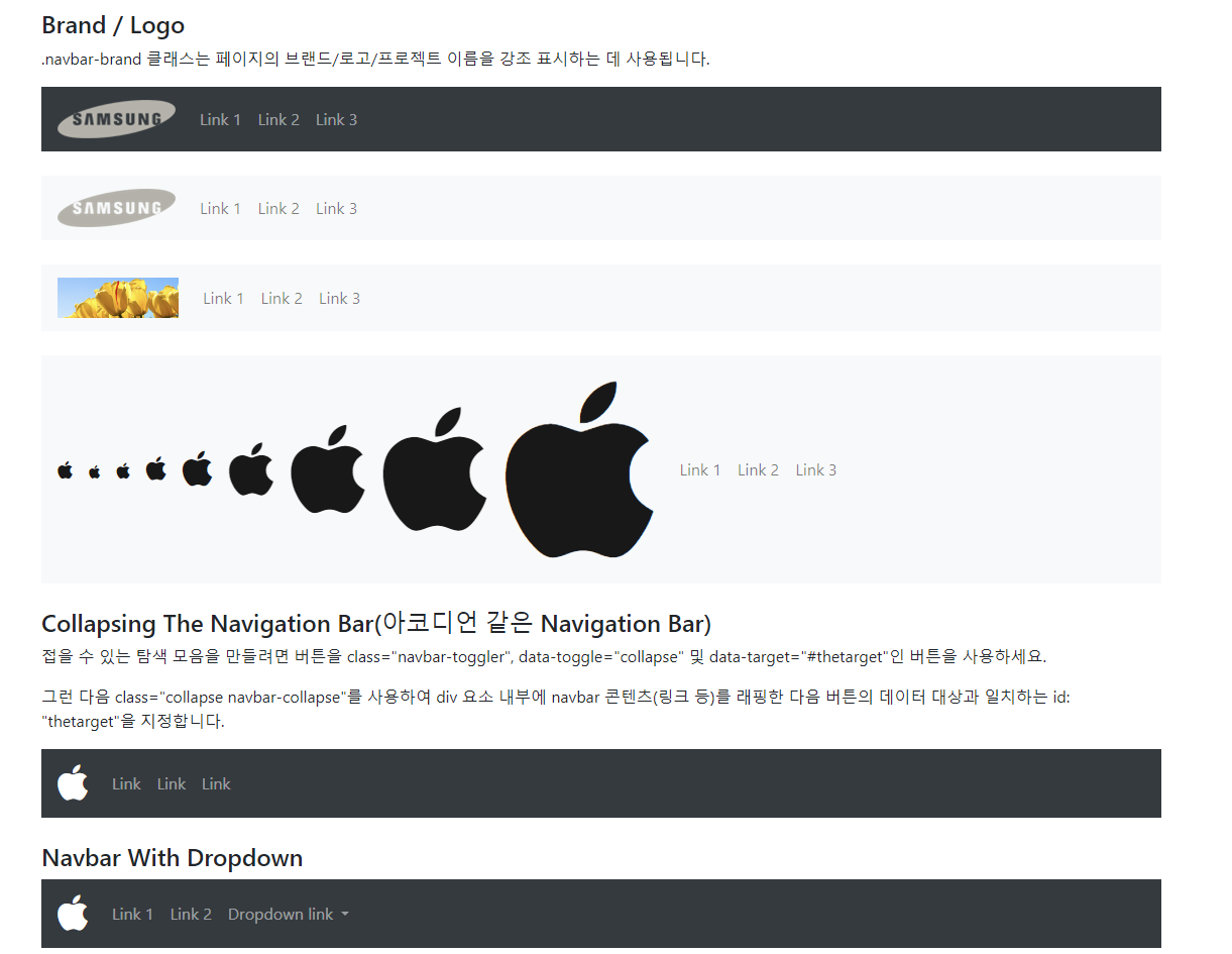 Navigation Bars (탐색 모음)은 페이지 상단에 배치되는 탐색 헤더로 Bootstrap을 사용하면 화면 크기에 따라 탐색 모음이 확장되거나 축소될 수 있다.