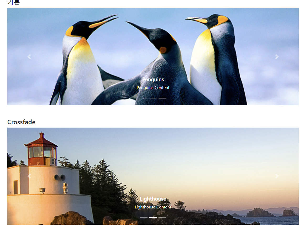 이미지를 여러장 나타내는 것으로 화살표를 이용해 이전과 다음이미지로 넘겨 볼 수 있는 시스템이다. 웹 사이트에서 흔히 볼 수 있다. Crossfade와 같이 넘기는 animation은 지정할 수 있다.