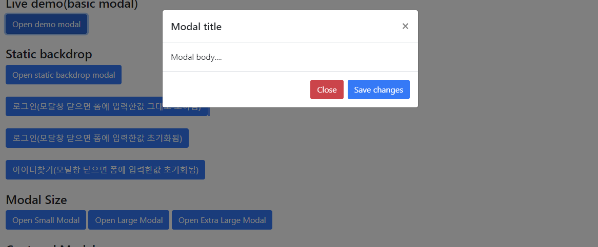 모달창은 제거를 하지 않고도 페이지를 이동하면 자연히 사라진다. Modal 구성 요소는 현재 페이지 상단에 표시되는 대화 상자/팝업 창이다.