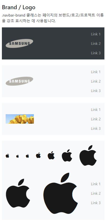 표준 탐색 모음은 .navbar 클래스를 사용하여 생성되고 반응형 축소 클래스(.navbar-expand-xl|lg|md|sm) 가 뒤따른다. navbar 내부에 링크를 추가하려면 class="navbar-nav"와 함께 <ul> 요소를 사용하면 된다. 그런 다음 .nav-item 클래스가 있는 <li> 요소를 추가하고 .nav-link 클래스가 있는 <a> 요소를 추가하여 사용한다.