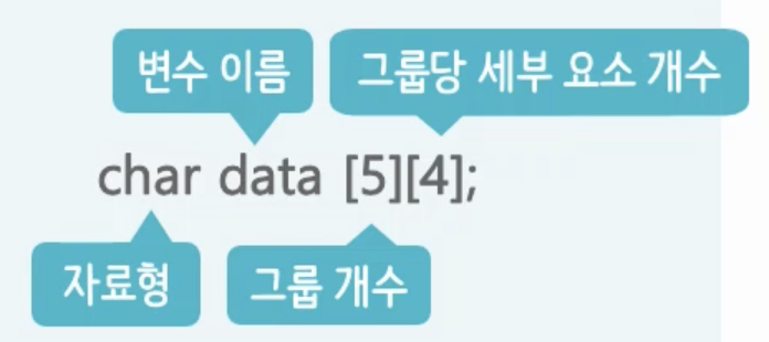 2차원 배열 선언 char data [5][4] 를 선언할때