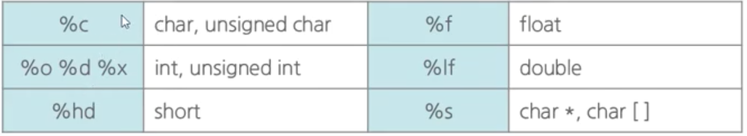 scanf - 입력 형식 키워드와 변수의 자료형이 일치해야한다. (이미 너무 많이 설명은 들은 상태라 자세한거는 생략)