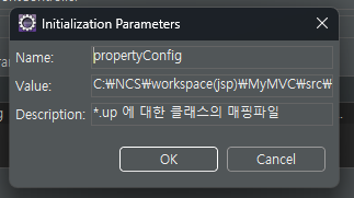 이 다음은 하나의 통합된 서블릿을 구현하는 것으로 서블릿을 만들어 name과 value (properties 경로)를 지정해 URL을 매핑하는 설정이다.